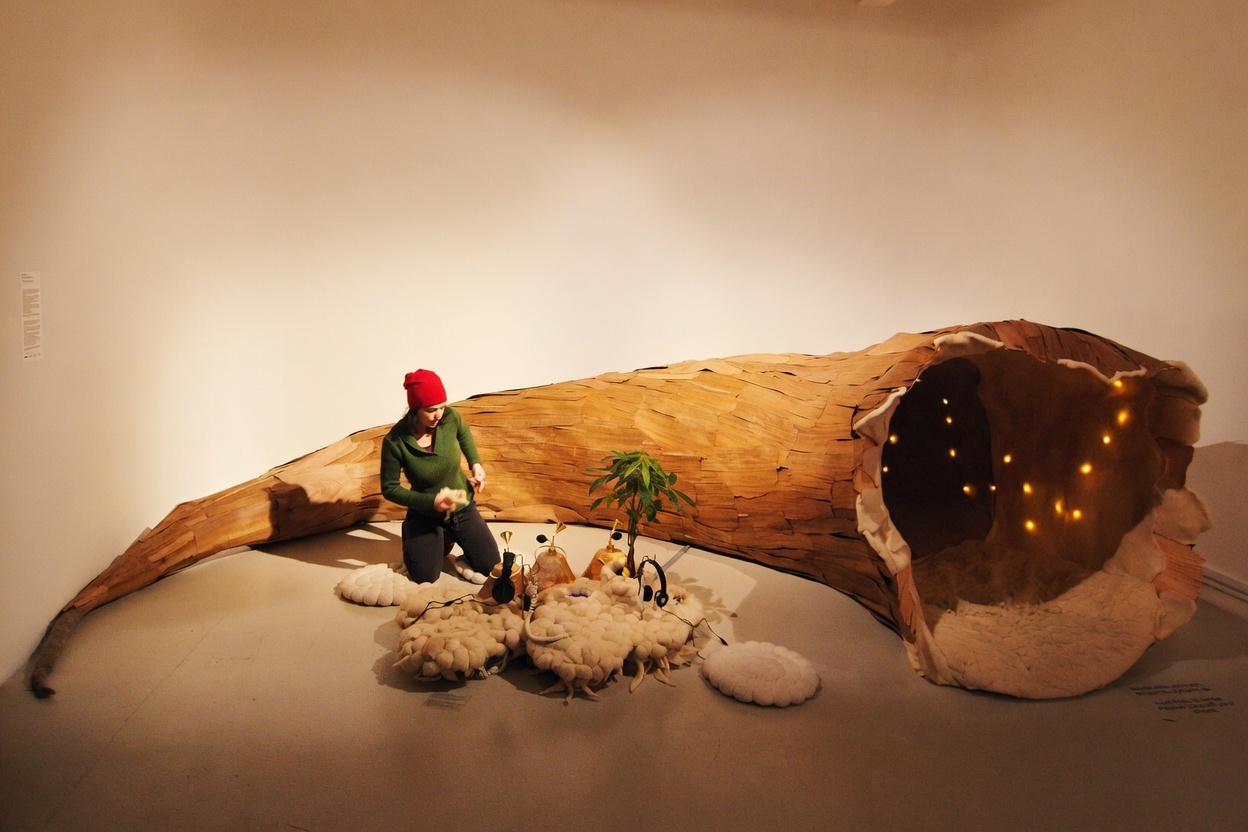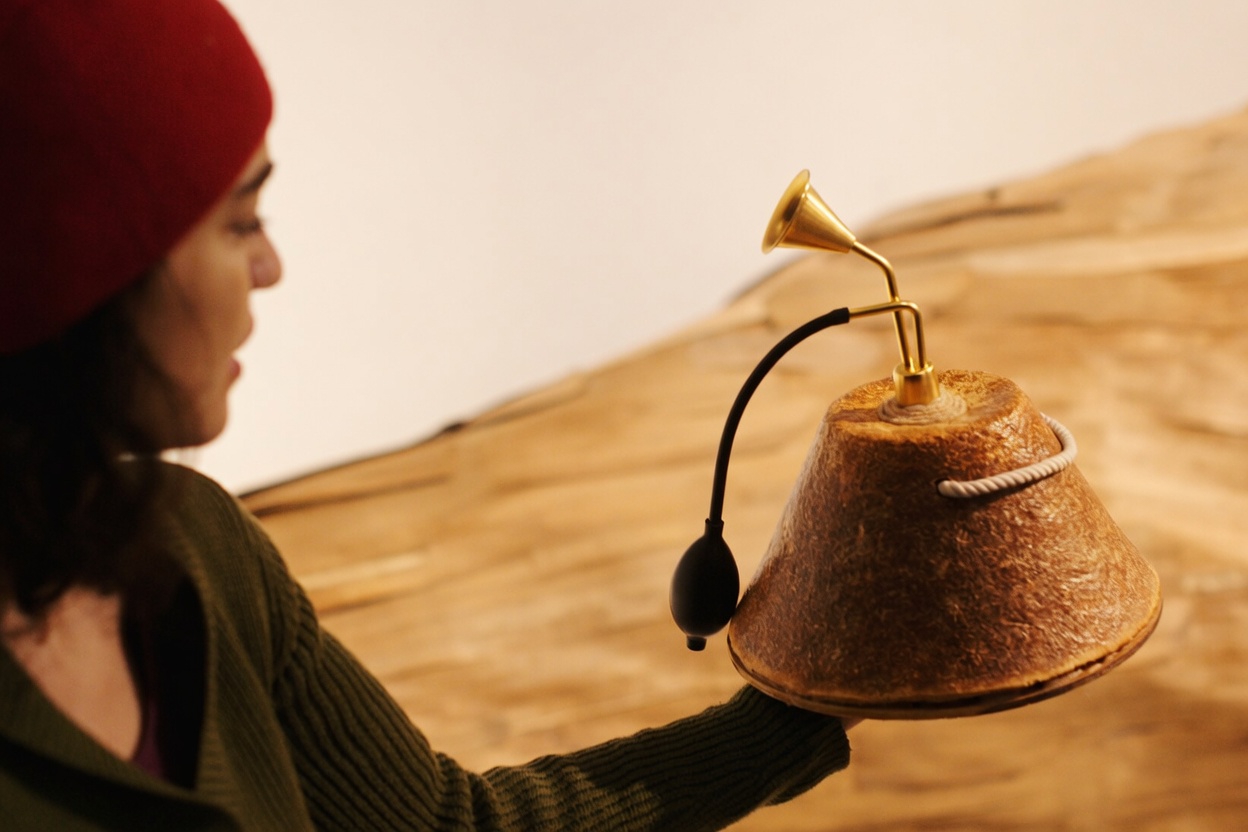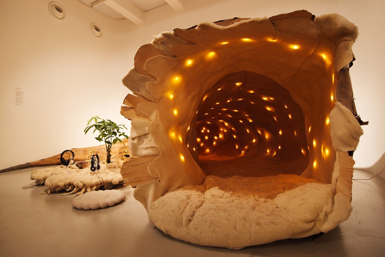 Instalace vzniká propojením organických a technologických principů do hybridního ekosystému. Pracuje s organickými prvky a materiály na bázi dřeva a mycelia jako s živým médiem. Technologické nástroje převádějí neviditelné procesy organismů do světelných a zvukových stop. Zviditelněné pohyby a rytmy rostlin se stávají kompozicí v prostoru a otevírají pozornost k tomu, co jí běžně uniká.